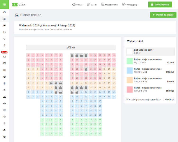 Twój obiekt posiada miejsca numerowane? Nie ma problemu - zaprojektujemy dla Ciebie plan, a Ty ustalisz w prosty i intuicyjny sposób ceny dla poszczególnych stref oraz miejsc.