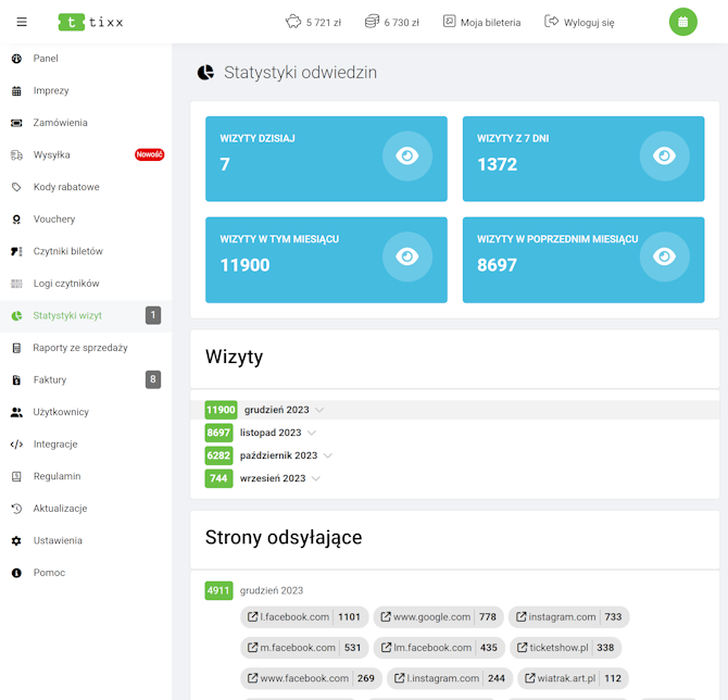 Jeżeli do promocji swoich imprez korzystasz z Facebooka, Googla czy stron patronów medialnych - system będzie śledził wszystkie wejścia z ich stron internetowych i zapisywał skąd zamawiający dowiedział się o imprezie.